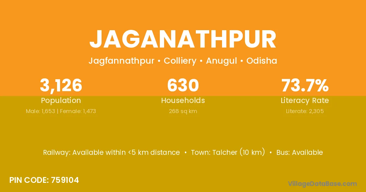 Khordha (20 km) is the nearest town to Jaganathpur village for major economic activities and is located approximately 20 km away.