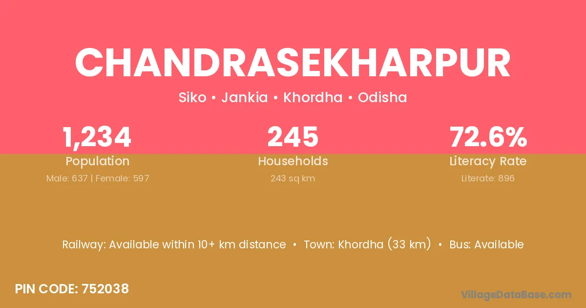 Nayagarh (28 km) is the nearest town to Chandrasekharpur village for major economic activities and is located approximately 28 km away.