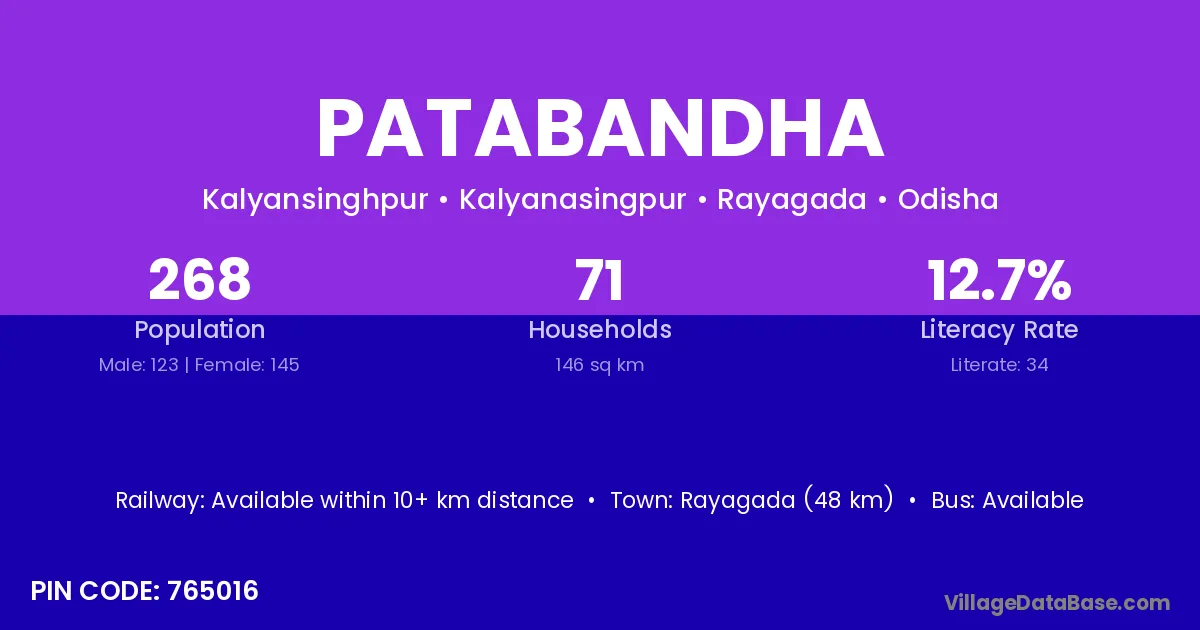 Nayagarh (35 km) is the nearest town to Patabandha village for major economic activities and is located approximately 35 km away.