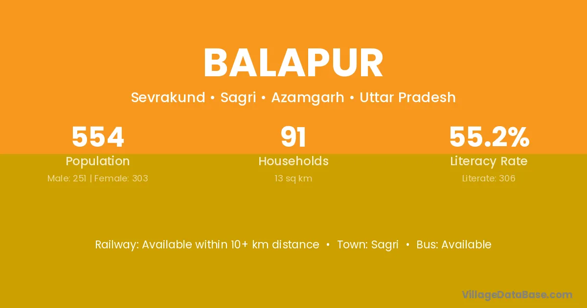 Balapur village has a total population of 1,019 people, of which 531 are males and 488 are females.
