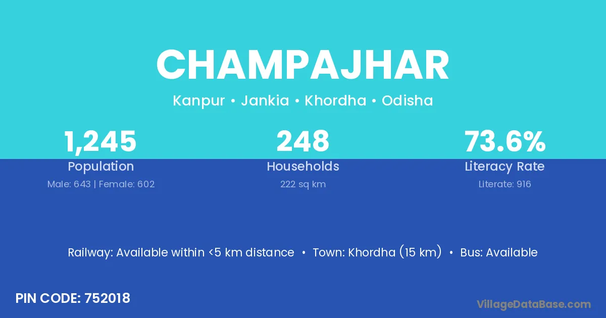 Champajhar village has a total population of 1,245 people, of which 643 are males and 602 are females.