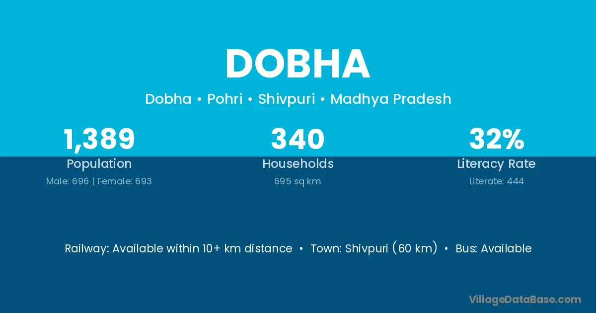 The literacy rate of Dobha village is 79.46%. Male literacy stands at 83.67% and female literacy at 74.71%.