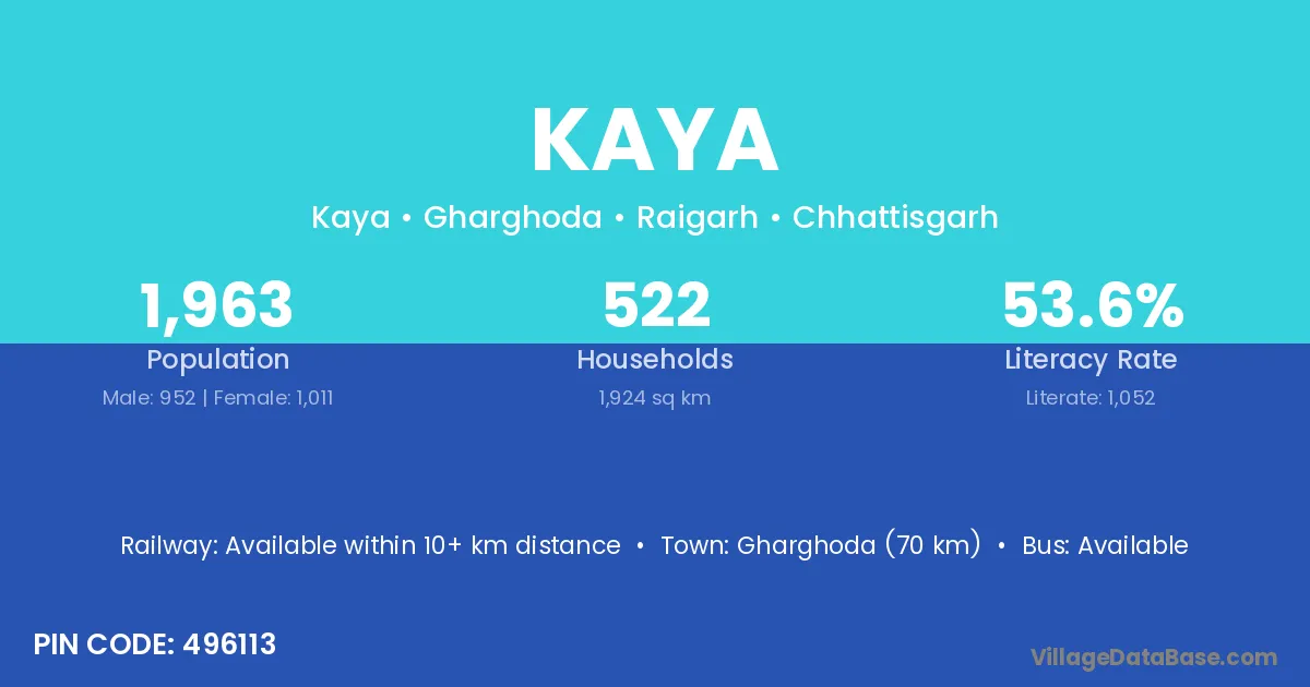 Khordha (21 km) is the nearest town to Kaya village for major economic activities and is located approximately 21 km away.