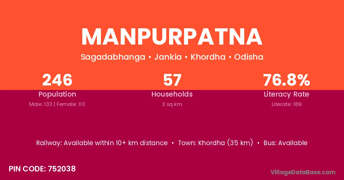 Manpurpatna village has a total population of 246 people, of which 133 are males and 113 are females.