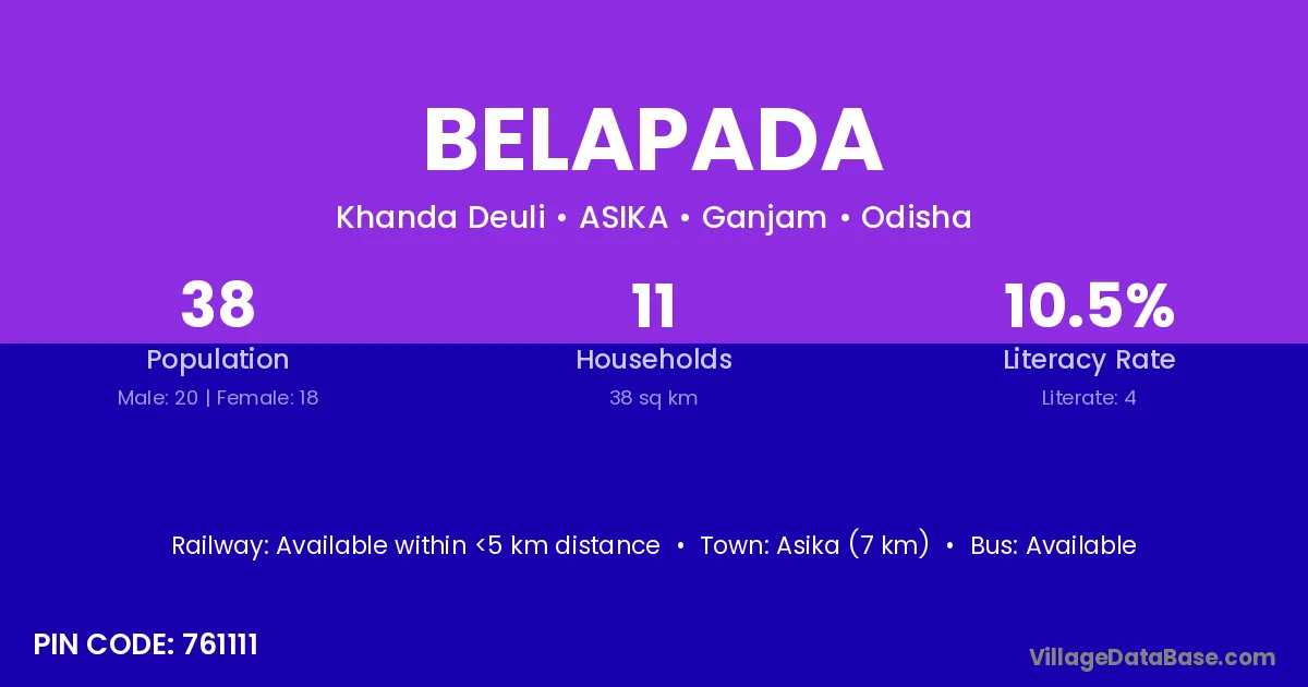 Jatani (3 km) is the nearest town to Belapada village for major economic activities and is located approximately 3 km away.
