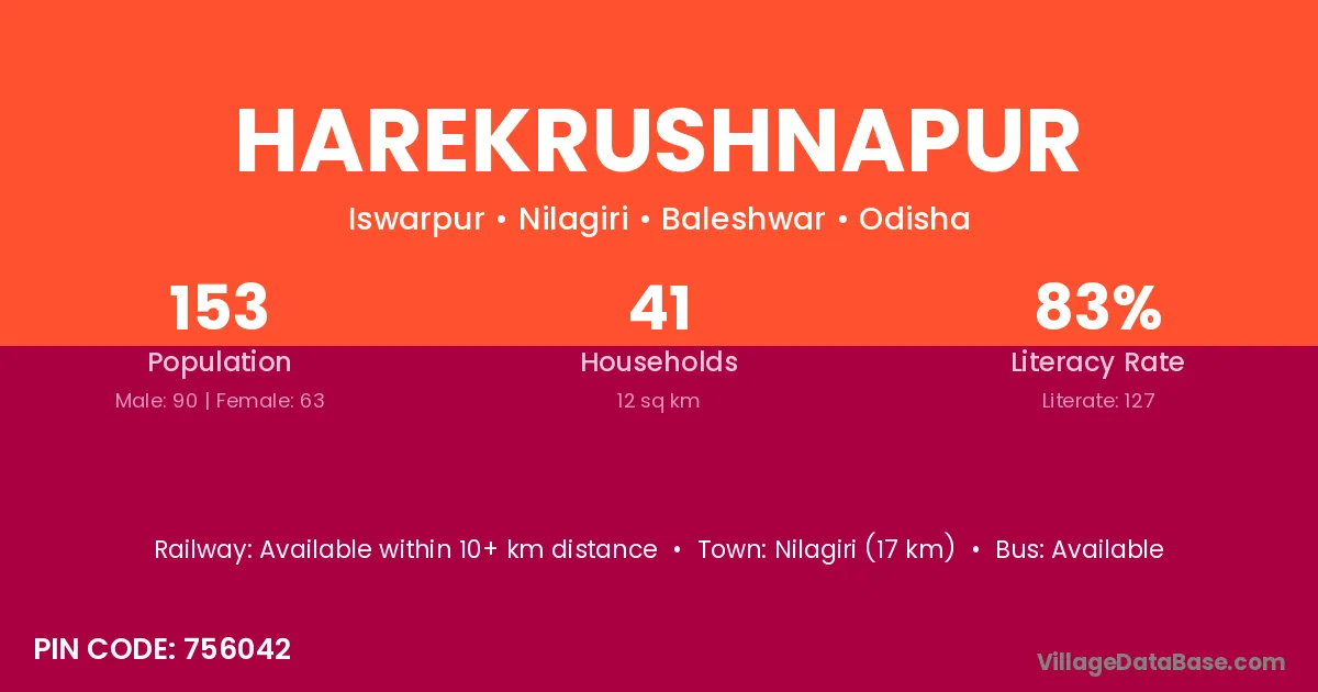 Jatani (9 km) is the nearest town to Harekrushnapur village for major economic activities and is located approximately 9 km away.