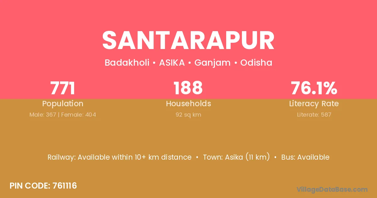 Jatani (8 km) is the nearest town to Santarapur village for major economic activities and is located approximately 8 km away.