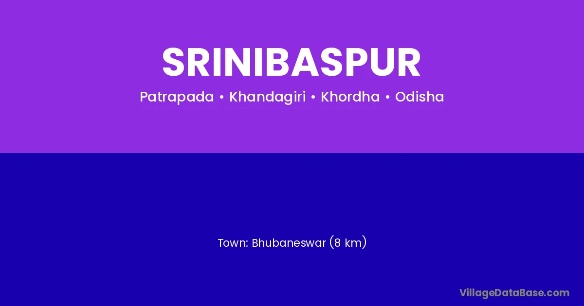Bhubaneswar (8 km) is the nearest town to Srinibaspur village for major economic activities and is located approximately 8 km away.