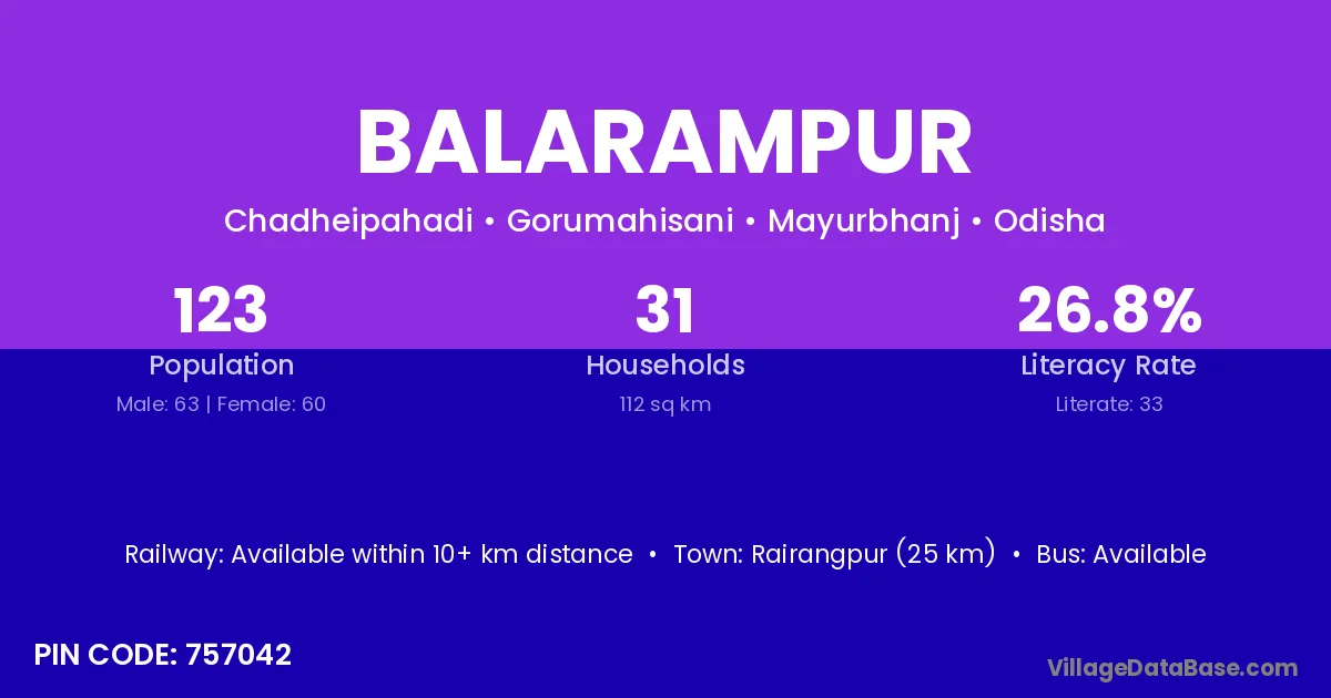 Khordha (20 km) is the nearest town to Balarampur village for major economic activities and is located approximately 20 km away.