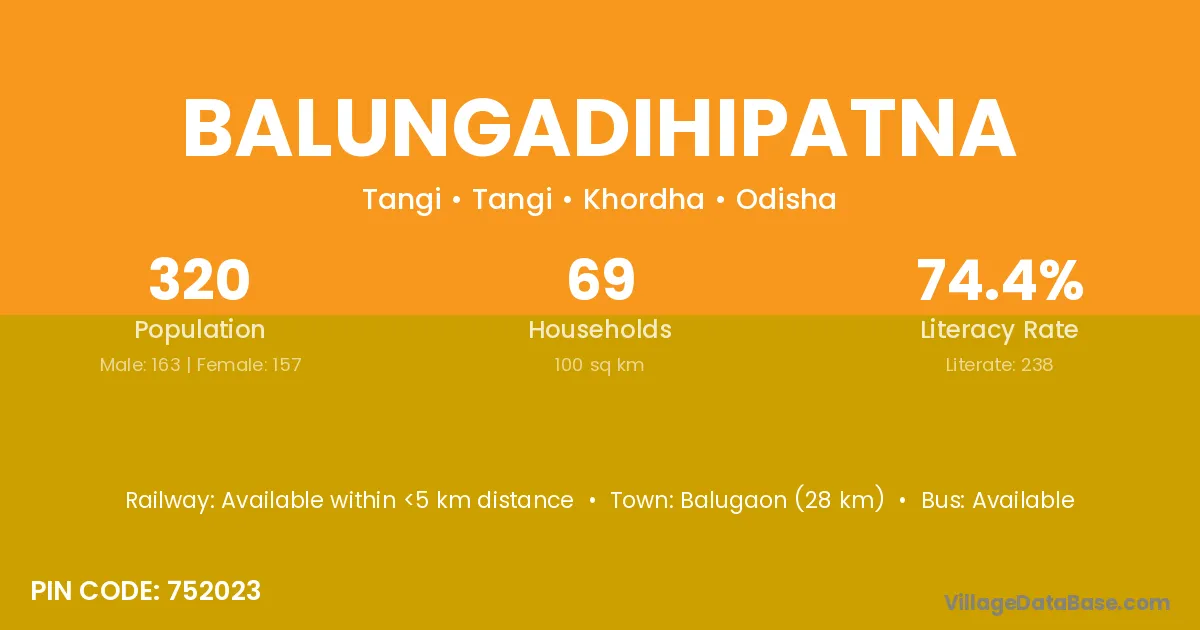 Balungadihipatna village has a total population of 320 people, of which 163 are males and 157 are females.