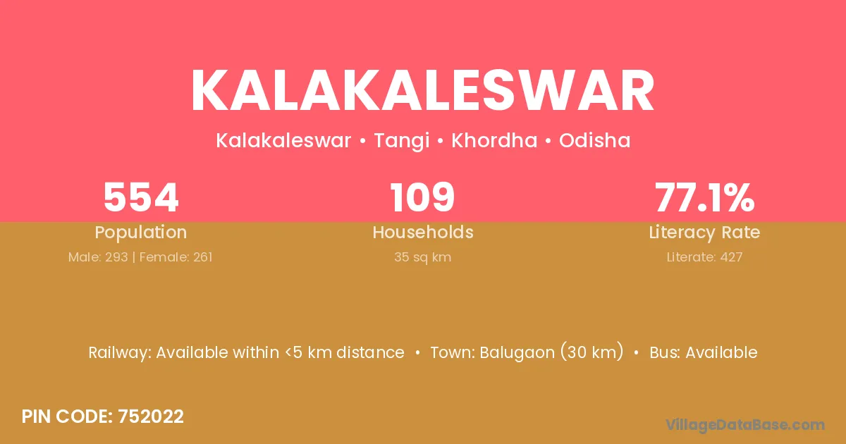 Kalakaleswar village has a total population of 554 people, of which 293 are males and 261 are females.