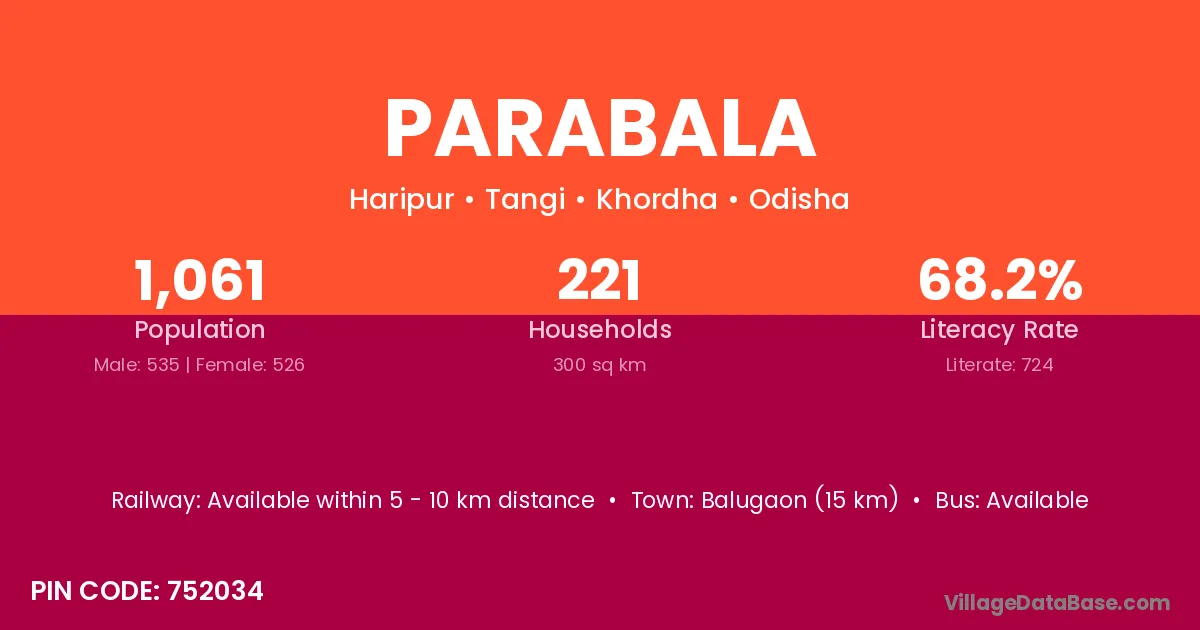 Parabala village has a total population of 1,061 people, of which 535 are males and 526 are females.