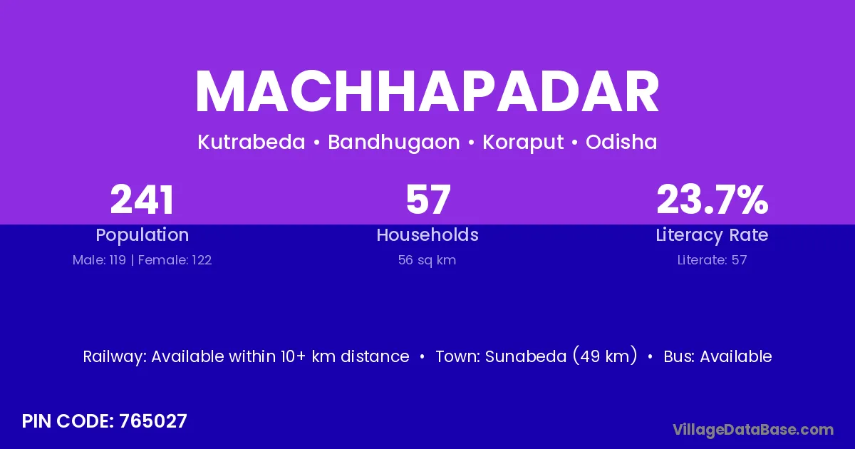 Machhapadar village has a total population of 241 people, of which 119 are males and 122 are females.