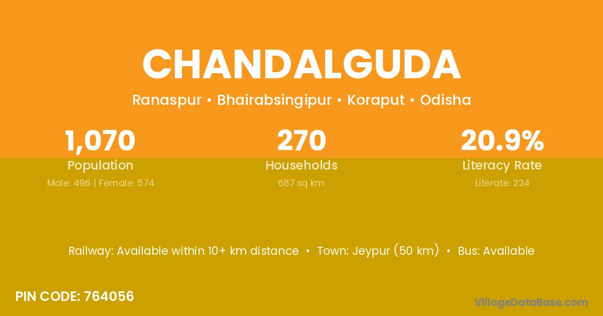 Chandalguda village has a total population of 1,070 people, of which 496 are males and 574 are females.