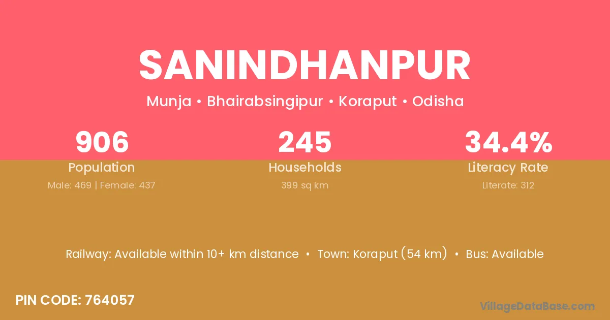 Koraput (54 km) is the nearest town to Sanindhanpur village for major economic activities and is located approximately 54 km away.