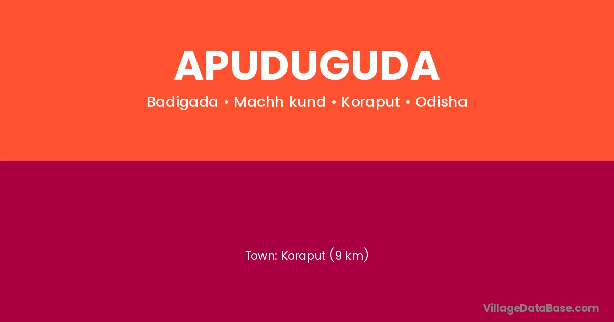 Jeypur (54 km) is the nearest town to Apuduguda village for major economic activities and is located approximately 54 km away.