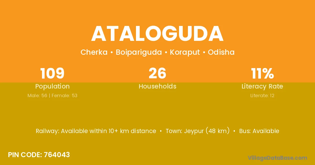 Jeypur (48 km) is the nearest town to Ataloguda village for major economic activities and is located approximately 48 km away.