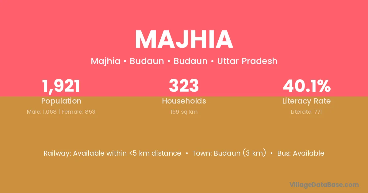 Majhia village has a total population of 960 people, of which 487 are males and 473 are females.