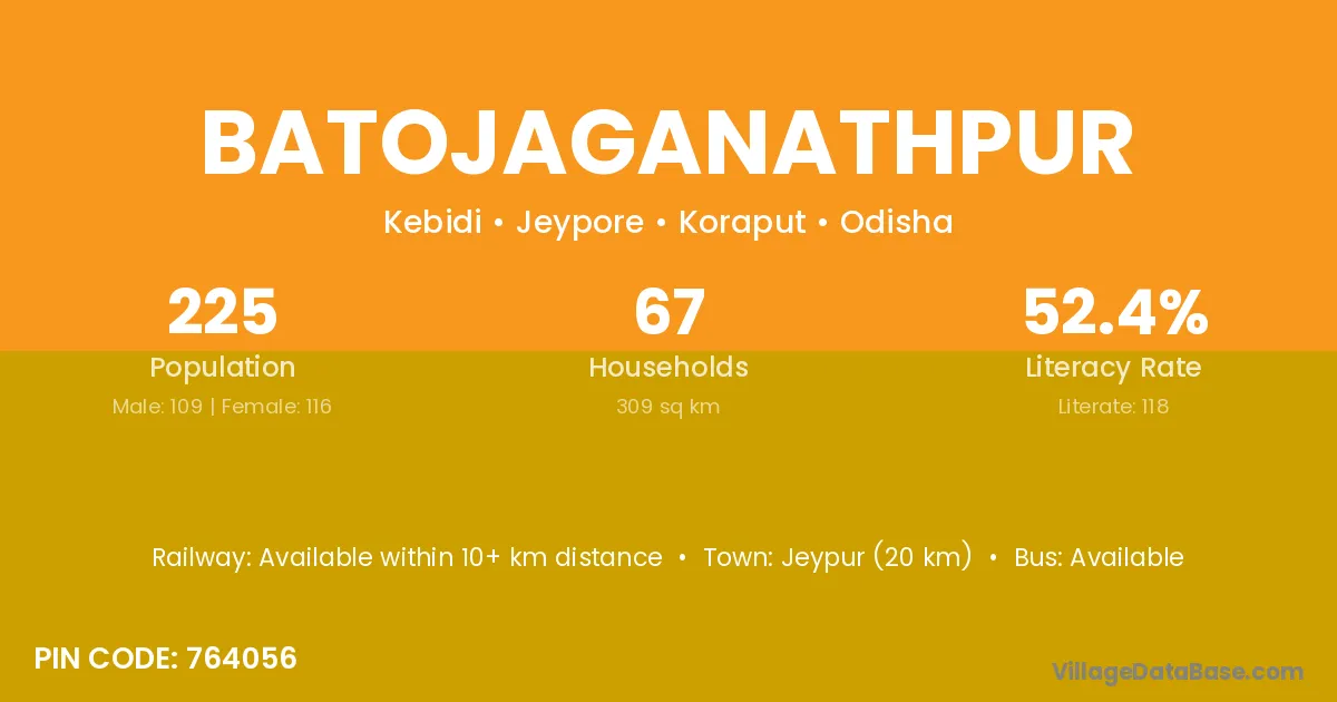 Jeypur (20 km) is the nearest town to Batojaganathpur village for major economic activities and is located approximately 20 km away.