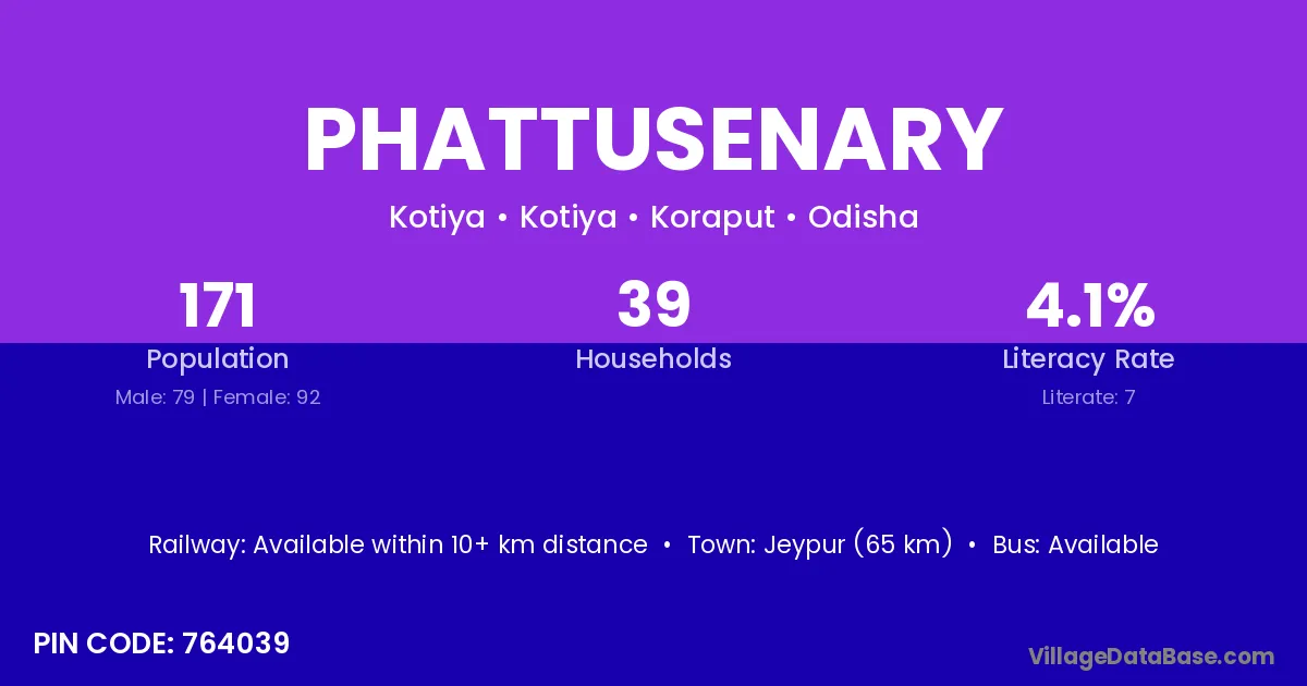 Phattusenary village is located in the Kotiya Tehsil of the Koraput district in Odisha .
