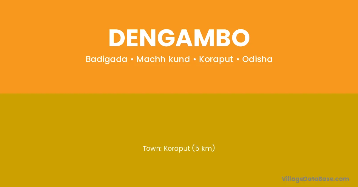 Koraput (5 km) is the nearest town to Dengambo village for major economic activities and is located approximately 5 km away.
