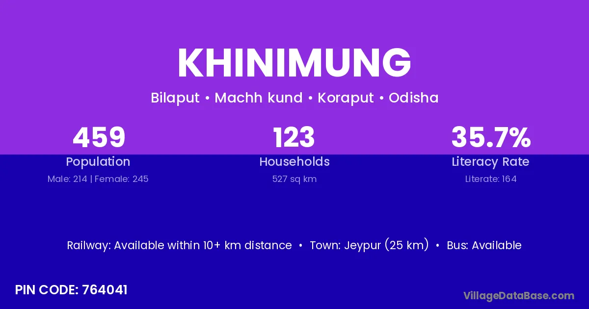 Jeypur (25 km) is the nearest town to Khinimung village for major economic activities and is located approximately 25 km away.