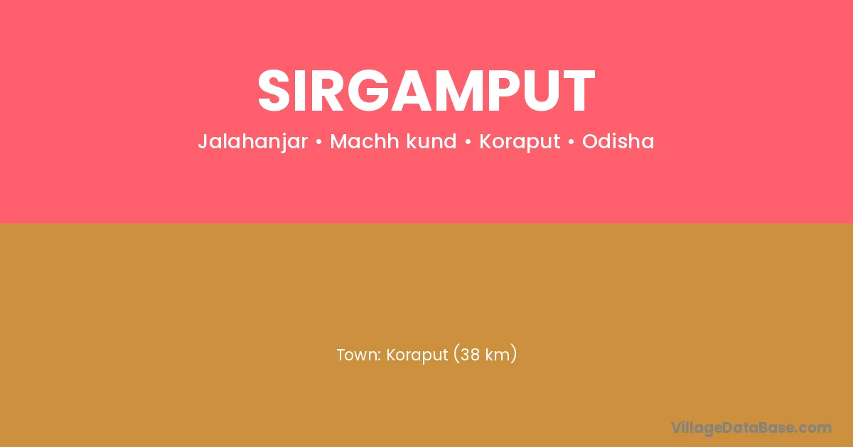 Koraput (38 km) is the nearest town to Sirgamput village for major economic activities and is located approximately 38 km away.