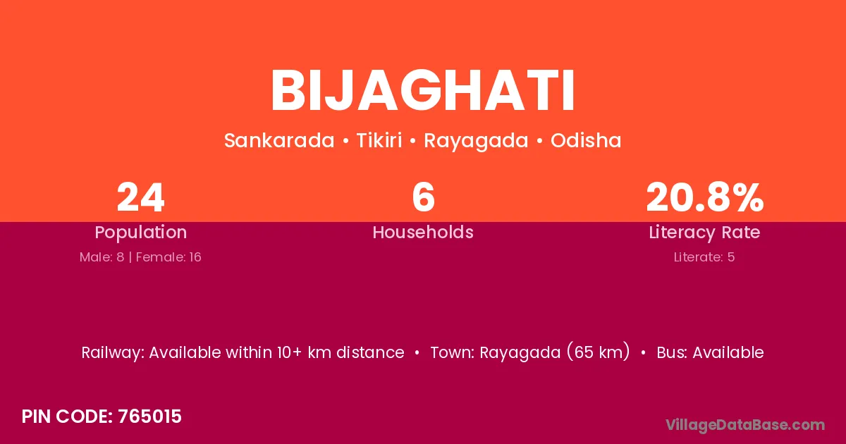 Sunabeda (2 km) is the nearest town to Bijaghati village for major economic activities and is located approximately 2 km away.