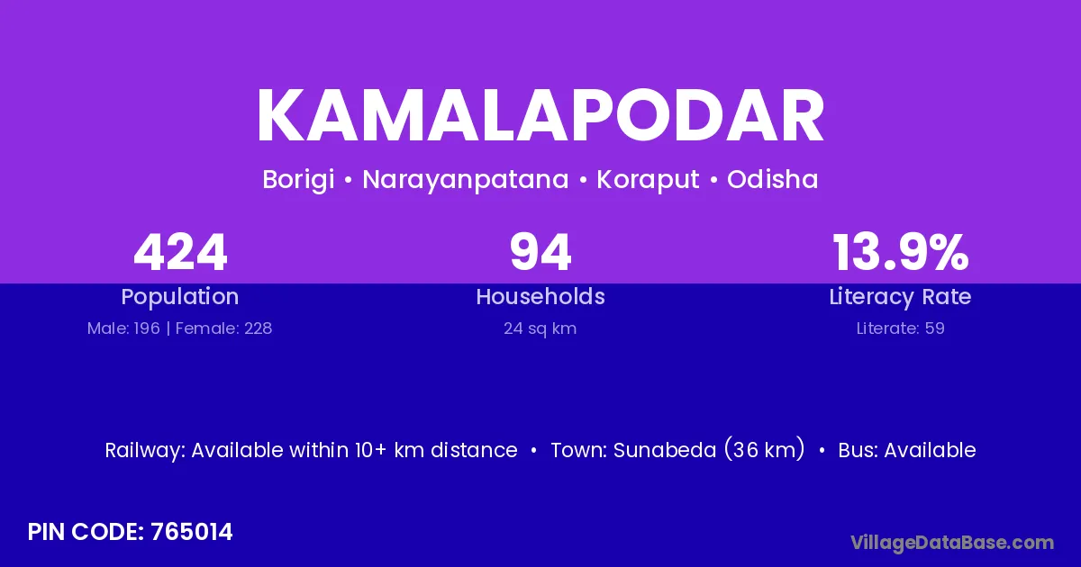 Kamalapodar village has a total population of 424 people, of which 196 are males and 228 are females.