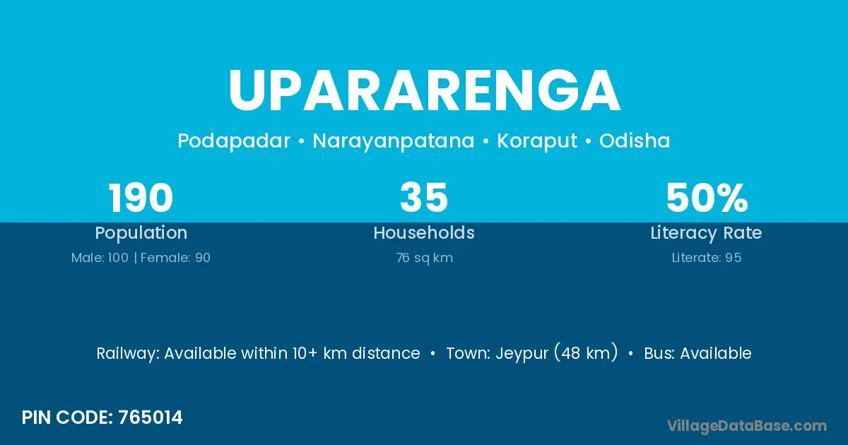 Jeypur (48 km) is the nearest town to Upararenga village for major economic activities and is located approximately 48 km away.