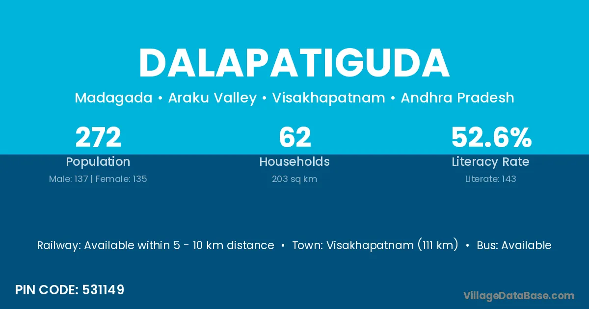 Dalapatiguda village has a total population of 195 people, of which 96 are males and 99 are females.