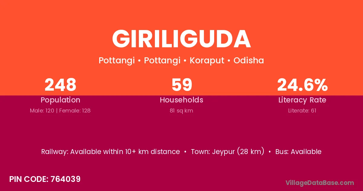 Giriliguda village has a total population of 248 people, of which 120 are males and 128 are females.