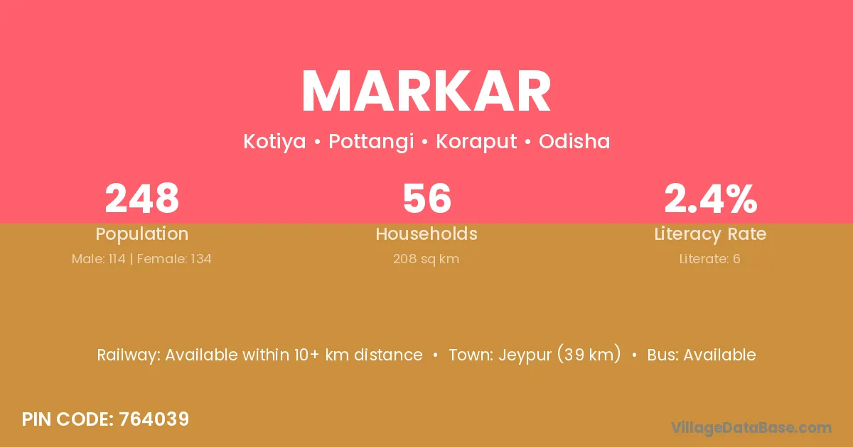 Jeypur (39 km) is the nearest town to Markar village for major economic activities and is located approximately 39 km away.