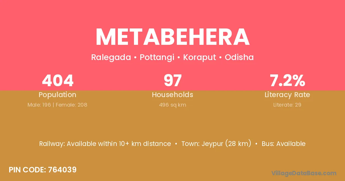 According to Census 2011 information, the village code of Metabehera village is 764039.