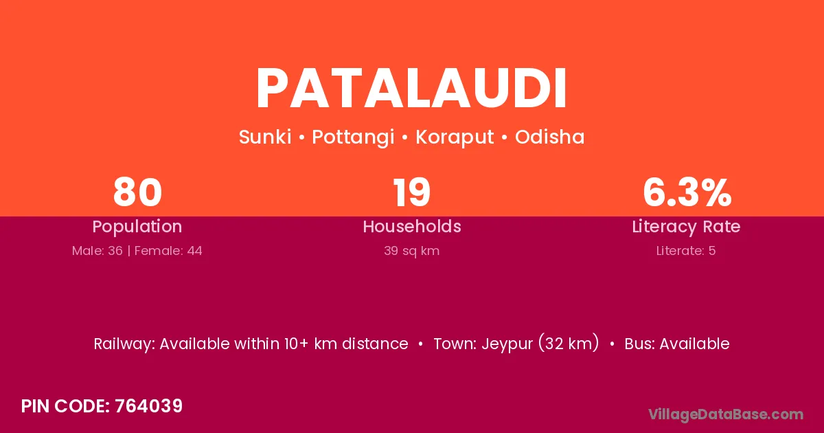 Jeypur (32 km) is the nearest town to Patalaudi village for major economic activities and is located approximately 32 km away.