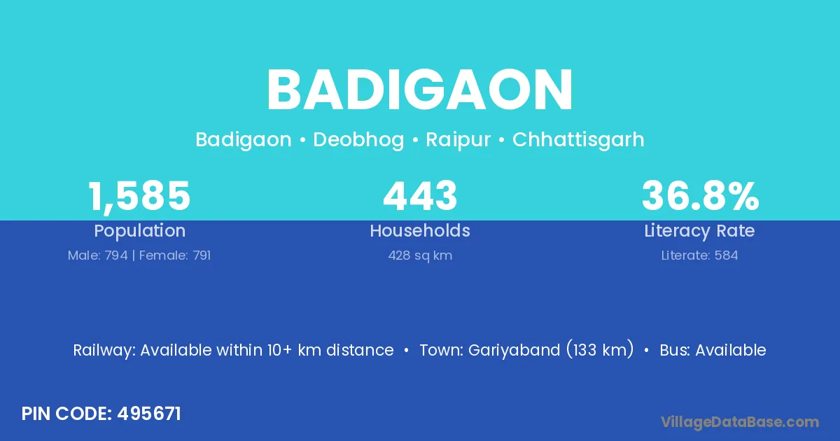 Nabarangapur (28 km) is the nearest town to Badigaon village for major economic activities and is located approximately 28 km away.
