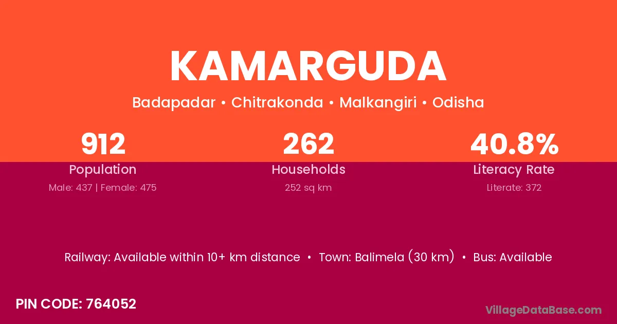 Kamarguda village is located in the Chitrakonda Tehsil of the Malkangiri district in Odisha .