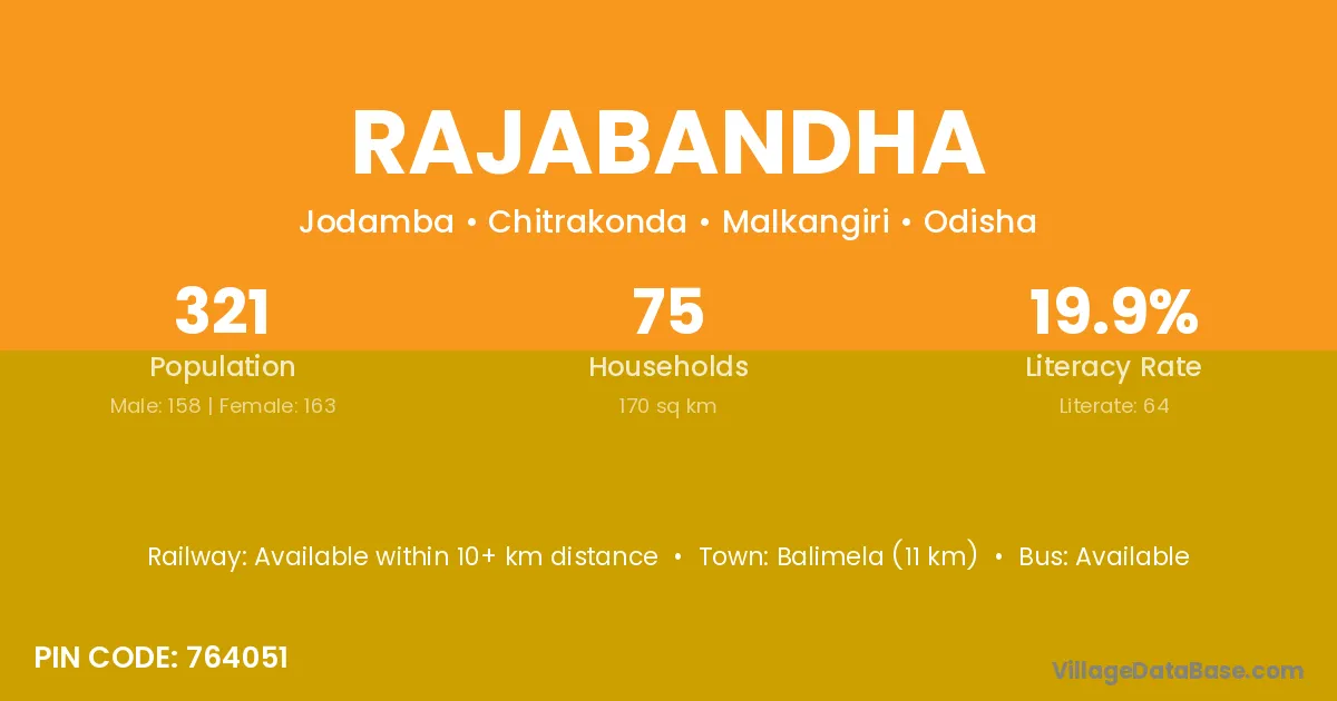 Balimela (11 km) is the nearest town to Rajabandha village for major economic activities and is located approximately 11 km away.