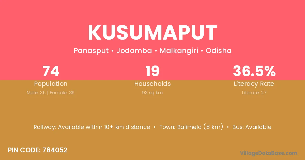 Balimela (8 km) is the nearest town to Kusumaput village for major economic activities and is located approximately 8 km away.
