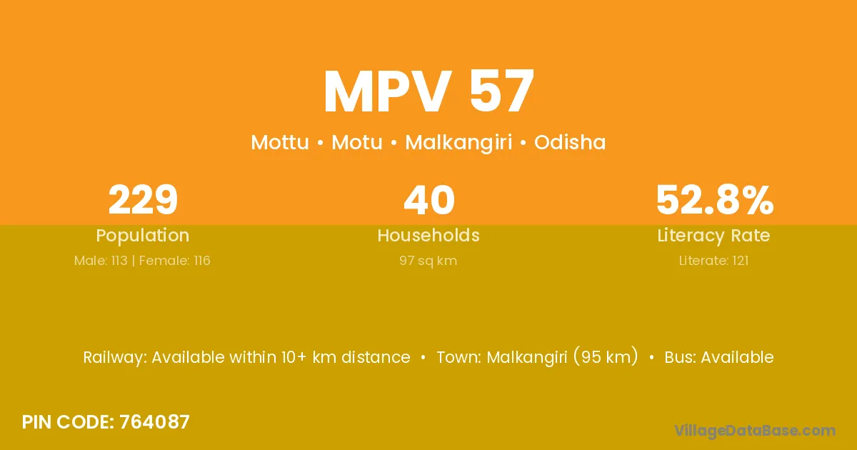 Mpv 57 village is located in the Motu Tehsil of the Malkangiri district in Odisha .