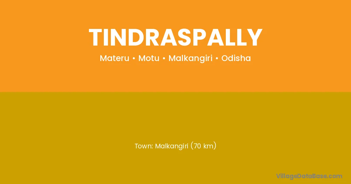 Malkangiri (70 km) is the nearest town to Tindraspally village for major economic activities and is located approximately 70 km away.