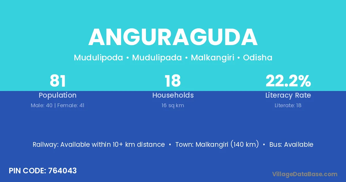 Anguraguda village is located in the Mudulipada Tehsil of the Malkangiri district in Odisha .