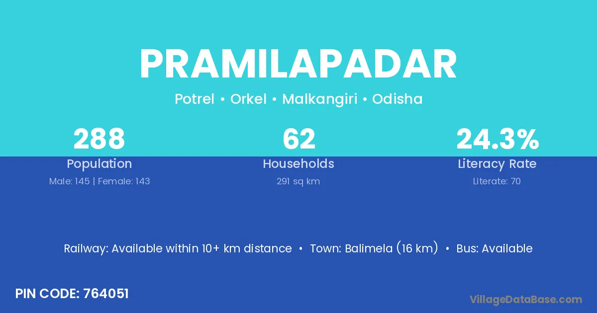 Pramilapadar village is located in the Orkel Tehsil of the Malkangiri district in Odisha .