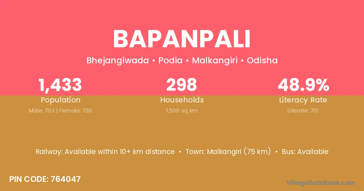 Bapanpali village is located in the Podia Tehsil of the Malkangiri district in Odisha .