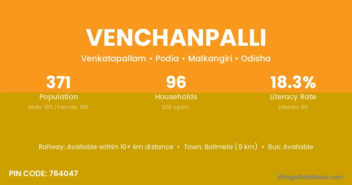 Balimela (9 km) is the nearest town to Venchanpalli village for major economic activities and is located approximately 9 km away.