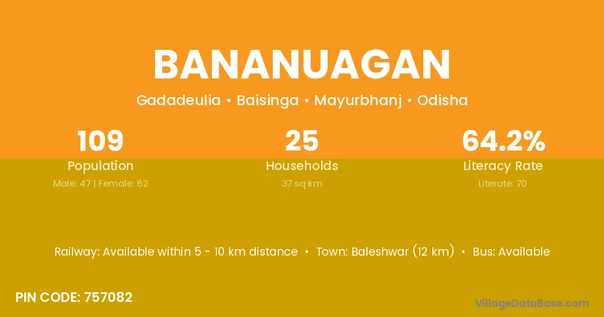 Baleshwar (12 km) is the nearest town to Bananuagan village for major economic activities and is located approximately 12 km away.
