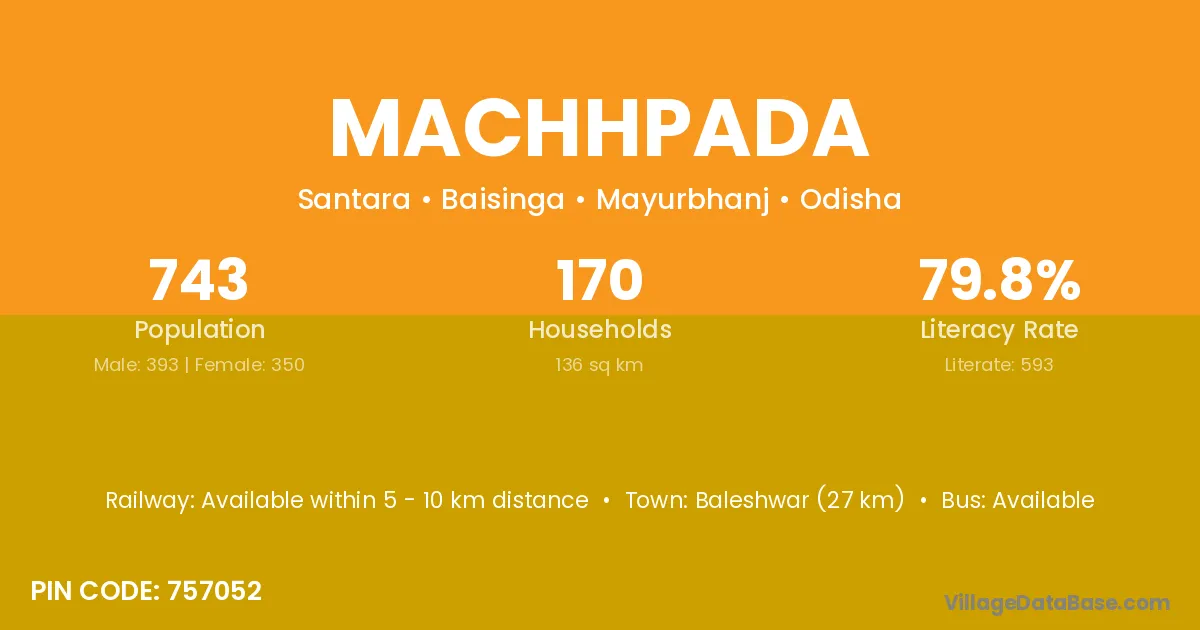 Baleshwar (27 km) is the nearest town to Machhpada village for major economic activities and is located approximately 27 km away.