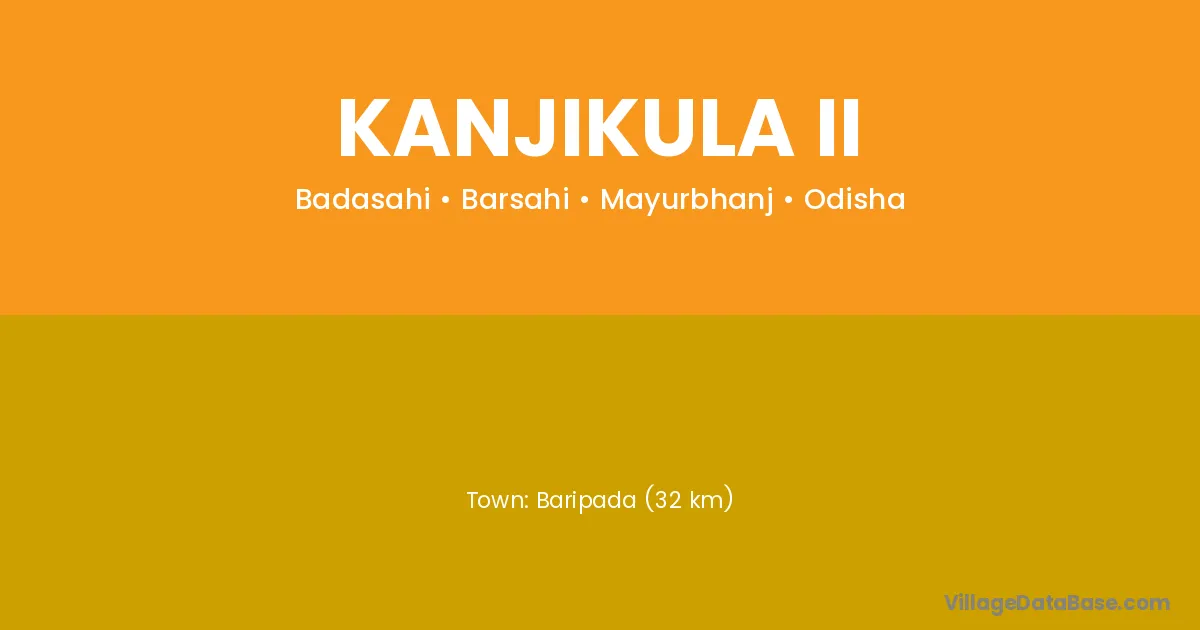Baripada (32 km) is the nearest town to Kanjikula Ii village for major economic activities and is located approximately 32 km away.