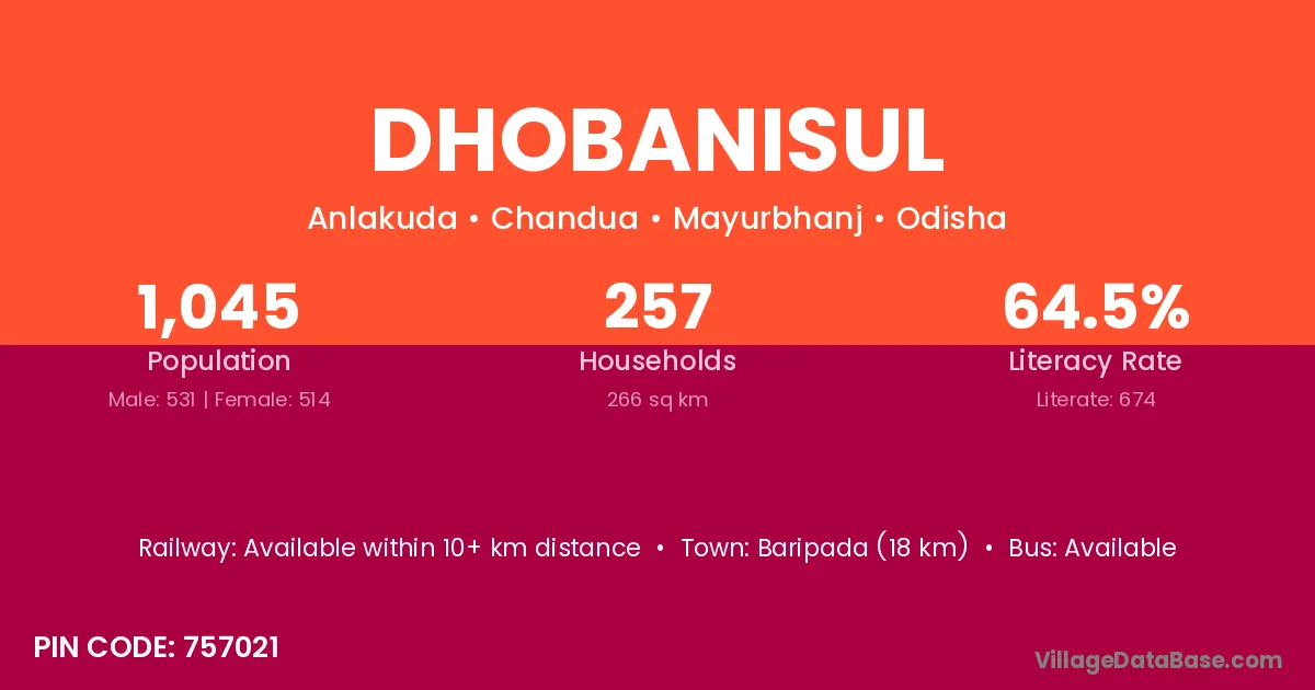 Dhobanisul village has a total population of 1,045 people, of which 531 are males and 514 are females.