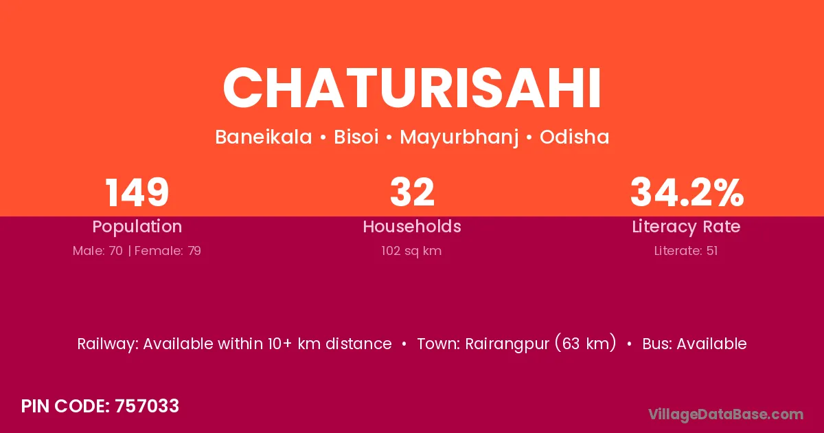 Karanjia (26 km) is the nearest town to Chaturisahi village for major economic activities and is located approximately 26 km away.